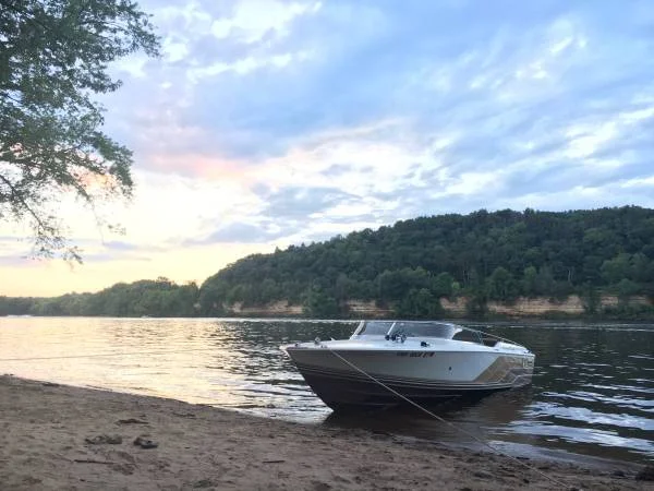 The boat is very clean. It only has around 350 hours on it. The gel coat is shiny. The boat runs and drives almost perfectly. It sounds fantastic, and starts immediately every time. The interior is in excellent all original condition. If you are looking for an xk22, or a cool rare fiberglass boat, this is the one.
